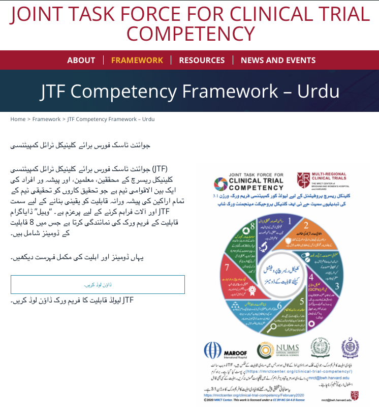 Developed by: Joint Task Force for Clinical Trial Competency (JTF), Maroof International Hospital, National University of Medical Sciences (NUMS), Munaza Jamil of McMaster University